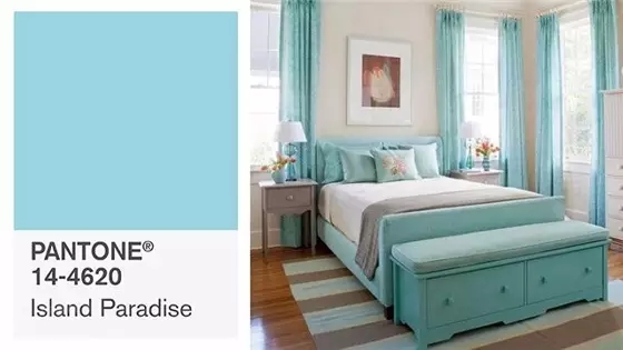 天堂島是一個令人耳目一新的水嫩色調,被用來轉換情境。清涼的藍綠色韻,充份說明我們成功脫逃的偉大夢想,天堂島是象征性的熱帶場域和我們放松身心的渴望。猜得到這顏色的靈感是源自于海洋中的島嶼,感覺相當夢幻,不管是穿起這個顏色去度假還是窩在點點海藍的小家中,都是相當 relax。